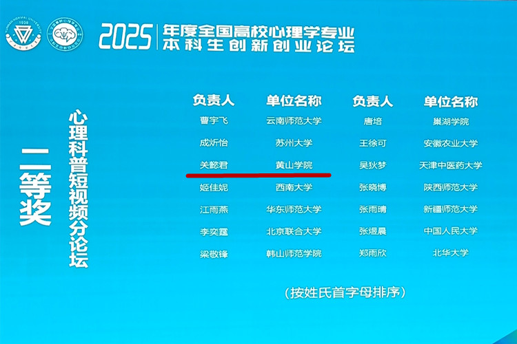 2025年59日至5月11日,由教育部高等学校心理学类专业教学指导委员会主办,云南师范大学教育学部心理学拔尖学生培养模式改革虚拟教研室、云南省心理学会承办的“2025年全国高校心理学专业本科生创新创业论坛”在云南昆明举行。该赛事分为四个分论坛,全国163个单位共提交作品479件,其中心理科普视频139件。各分论坛排名前15%的项目参加现场展示环节