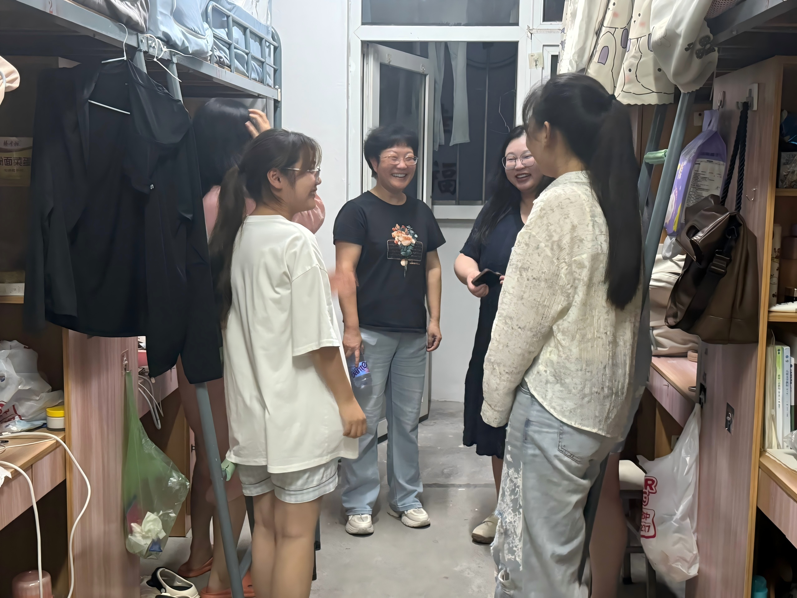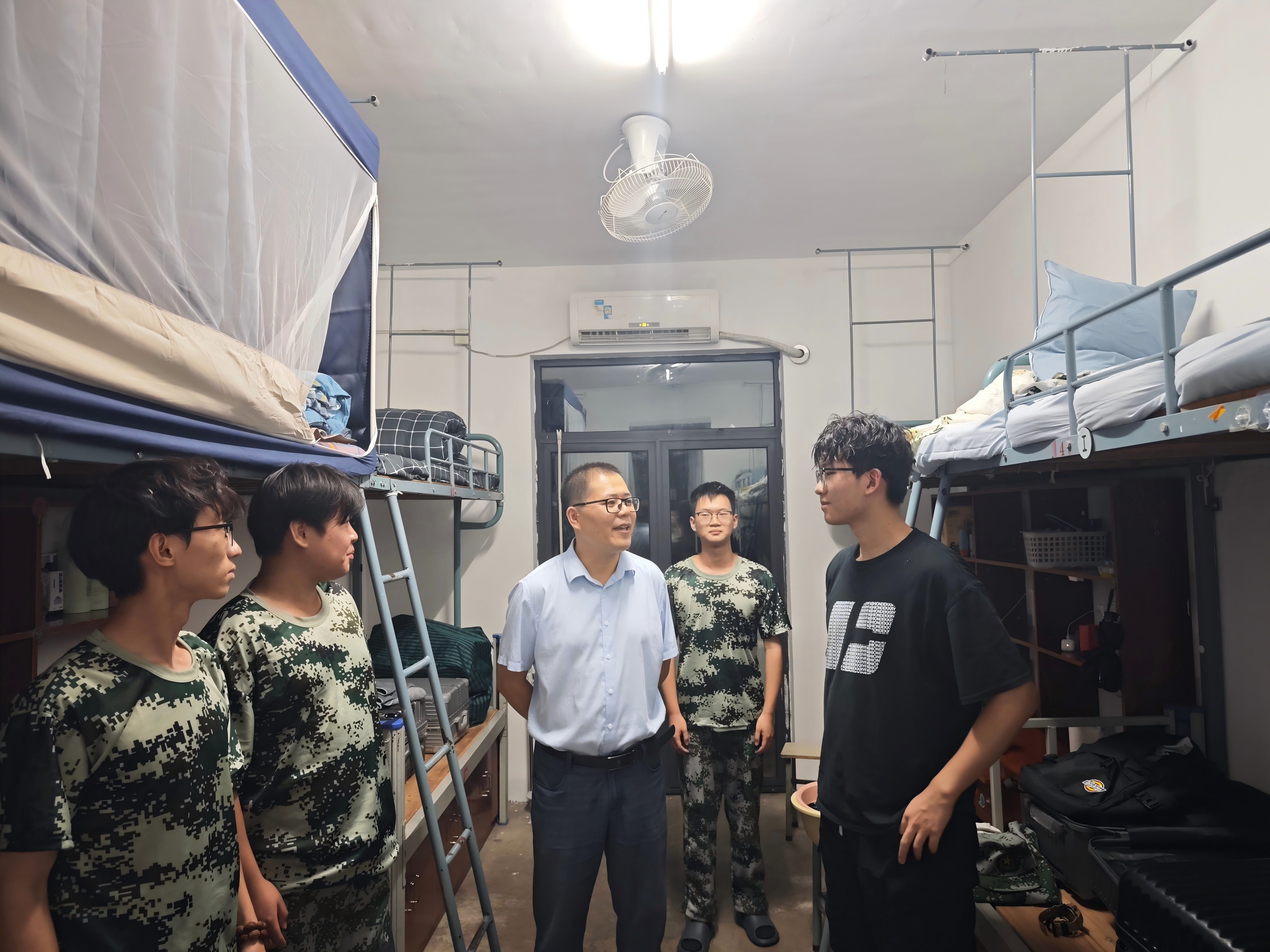 为巩固拓展深入贯彻中央八项规定精神学习教育成果,推进作风建设常态化长效化,9月11日晚,教育科学学院党总支书记朱蕾晔、副书记赵国力、副院长袁书杰带领全体辅导员,分组走访2025级新生宿舍,深入了解新生入学后的住宿情况与适应状态,助力新生快速融入校园生活。