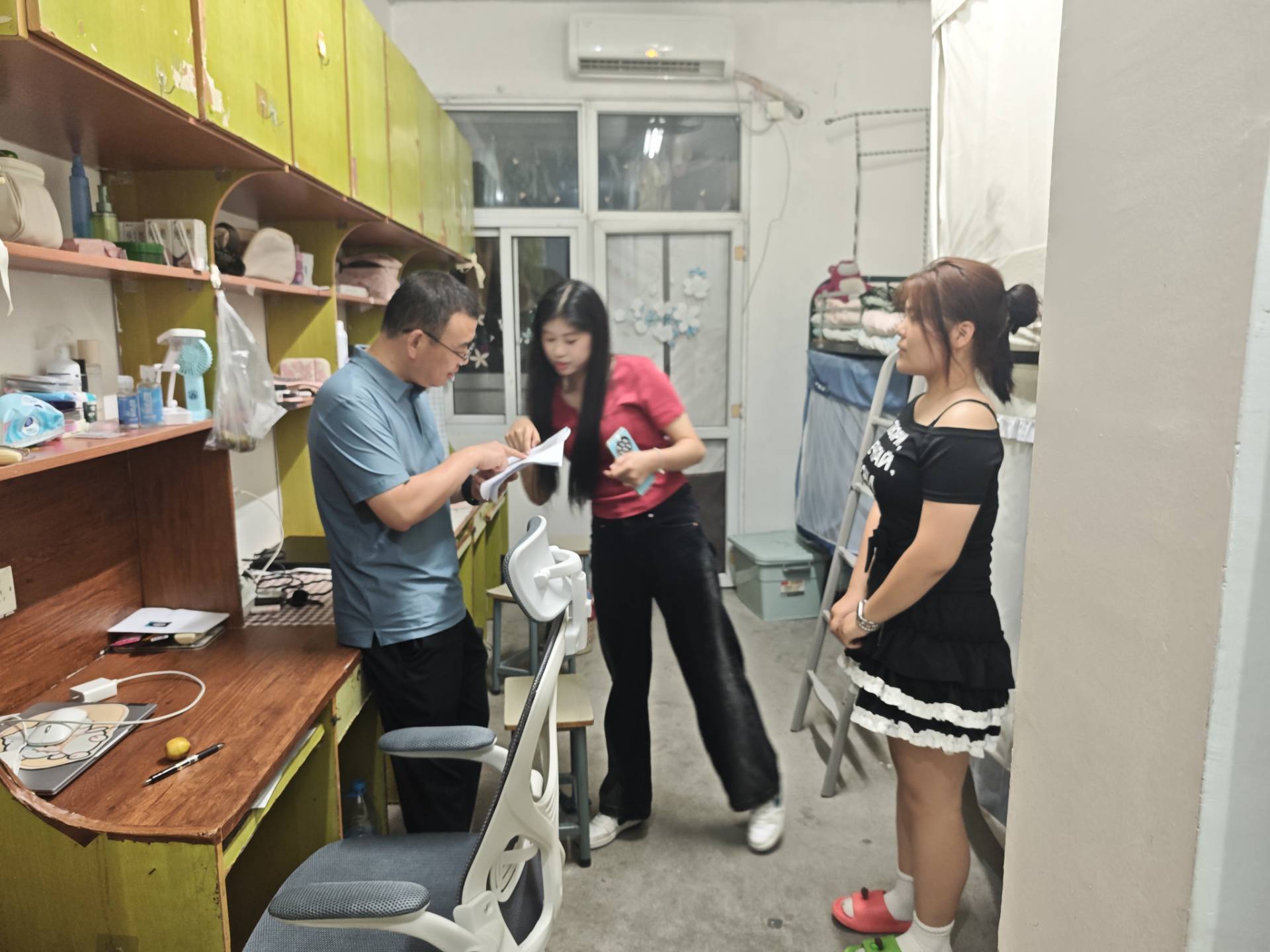 在走访过程中,老师们每进入一间寝室,都先送上亲切的问候,并详细介绍太阳成集团tyc7111各专业领域的办学特色、师资力量和实践教学平台,以增强学生对未来专业学习与职业发展的信心。他们勉励新生牢记开学典礼上李庆宏校长提出的殷切希望,积极践行“教人求真,学做真人”的校训精神。针对“课程设置”“宿舍管理”“奖助学金政策”“实习就业方向”等学生关心的问题,老师们进行了细致耐心地解答。同时,提醒新生时刻绷紧安全之弦,保护好个人信息,防范电信诈骗。