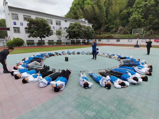 揭牌仪式后,张孝义博士带领心理学专业的学生为森村七年级学生开展了“放飞心灵 助你同行”‘心理拓展训练,活动通过问候互动、“暴风骤雨”热身、反口头练习、动力圈游戏、团队组合、文化展示等环节,循序渐进地引导学生自信互信、确定目标、交流合作共克艰难、最后完成任务,以达到改善人际关系,增进同学们的班级认同感和凝聚力,提升农村学生的心理健康水平。
