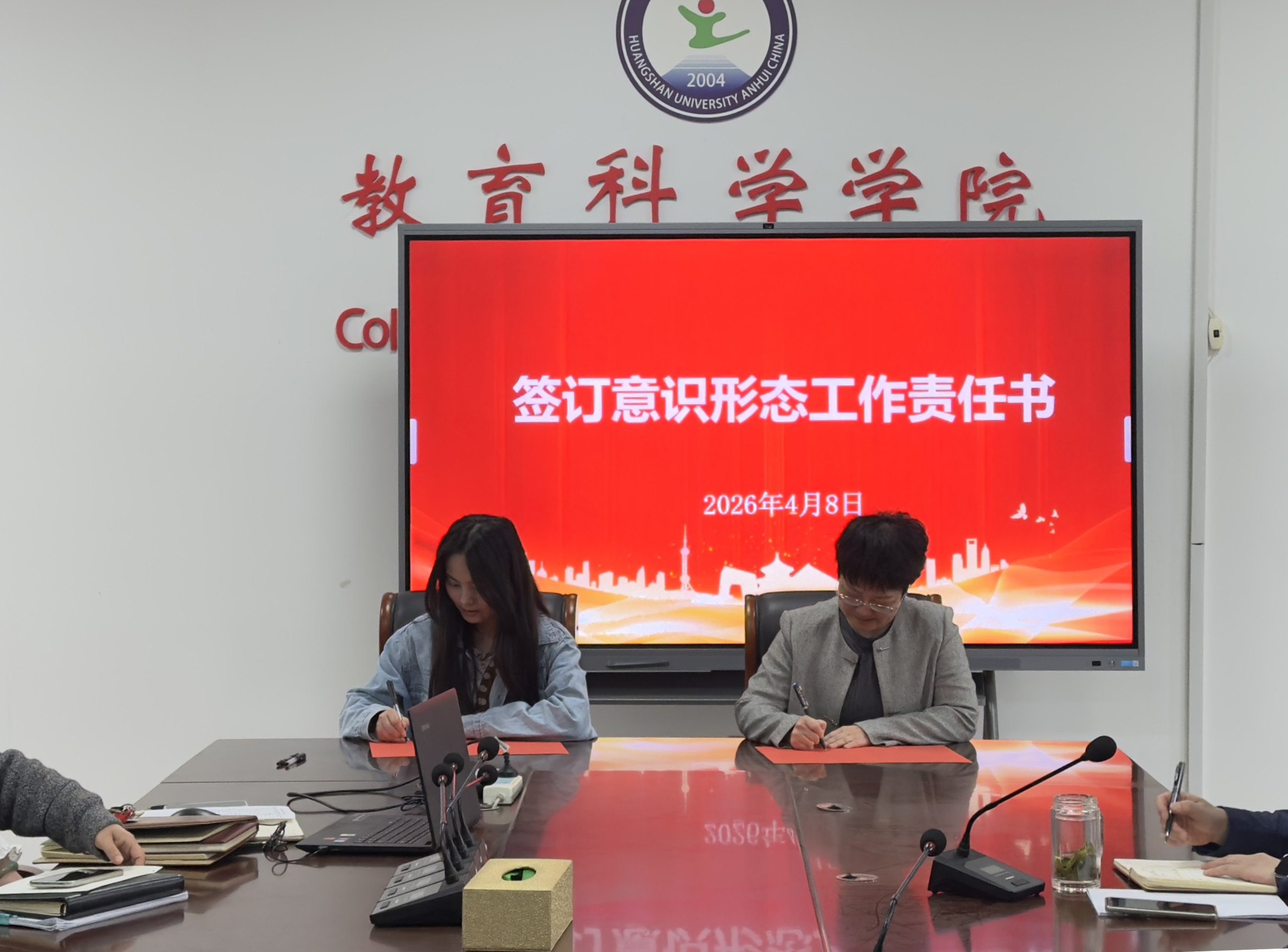 朱蕾晔与各教研室主任、支部书记签订意识形态工作责任书,并组织学习责任书内容。她强调,要严把课堂教学、学术研究、宣传阵地“第一关口”,从严从实开展师生思想动态排查与引导,做到守土有责、守土尽责,坚决防范化解意识形态领域风险,确保学院意识形态领域绝对安全、阵地稳固。