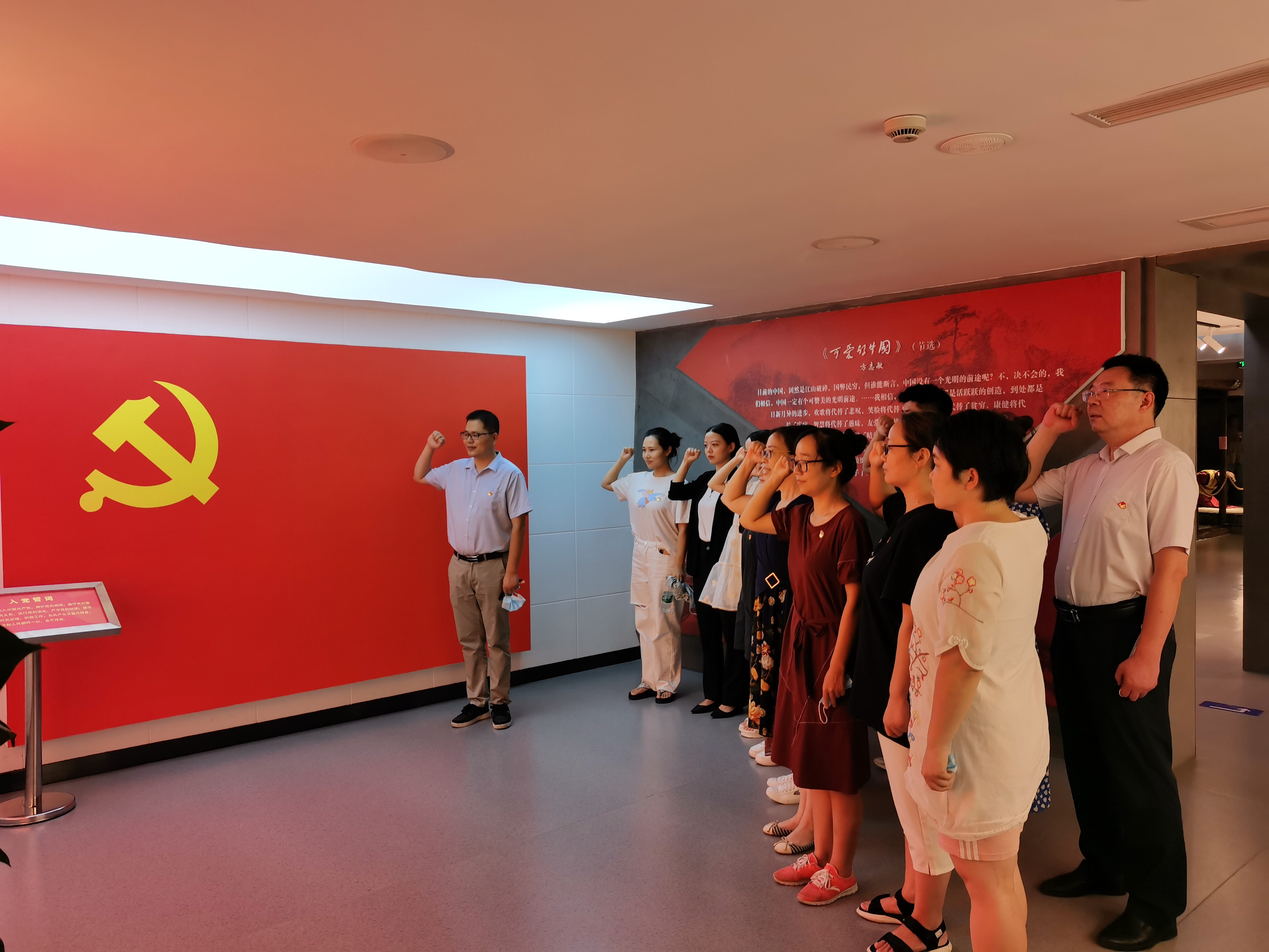 大家依次参观了四个展区,感受着峥嵘岁月中革命前辈的奋斗精神,最后,全体教师党员庄严地举起右手,在鲜红的党旗下,重温入党誓词。活动结束后,党员们纷纷表示,要继承革命先烈的遗志,学习他们坚守初心、敢于担当、不畏牺牲的崇高品质,以史为鉴,在追寻红色历史的同时找回初心,以更加积极向上的状态和实际行动践行共产党员的光荣使命。(撰稿:教科院 胡兰;摄影:教科院;审核:教科院 余南宁)
