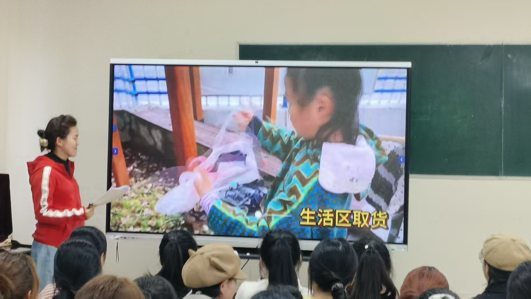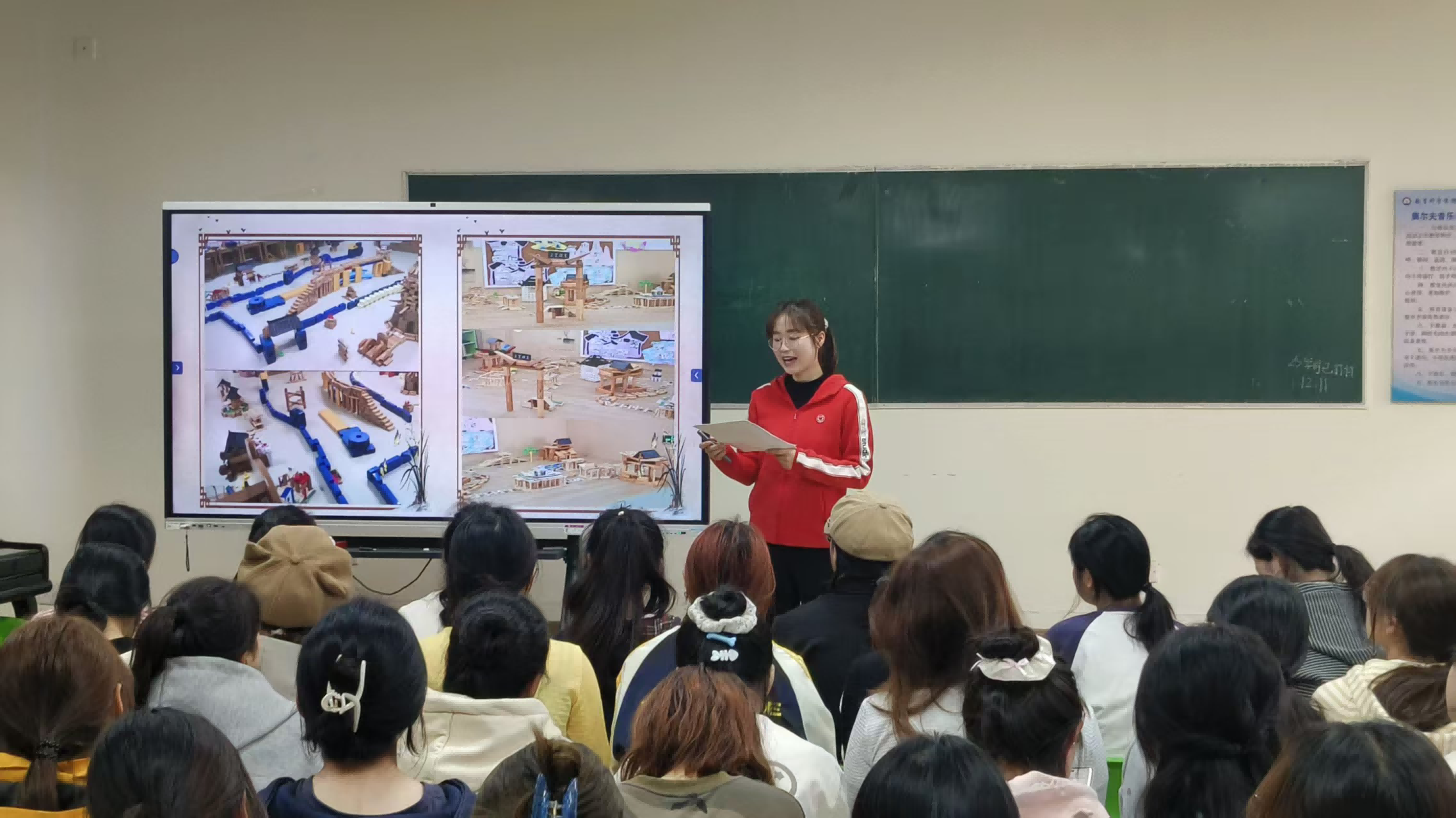 交流现场,老师们紧扣小、中、大班幼儿的发展特点,通过小班绘本教学《一百只蜗牛去旅行》、中班建构游戏“我搭建的徽州古城”、大班户外自主活动“树屋变形记”等典型案例,从激发好奇心的绘本互动,到融合徽州文化、培育协作能力的建构游戏,再到鼓励自主探索、发展创新思维的户外实践,生动展示了一线教师如何将“以幼儿为主体”的教育理念落到实处。学生们认真聆听记录、积极互动,现场氛围热烈。
