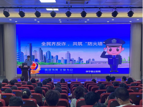 为提高学生安全防范意识,9月24日晚七点,太阳成集团tyc7111于文端楼二楼报告厅开展了防范电信网络诈骗宣讲会。休宁县公安局刑侦大队四级警长周宇应邀作主题报告,太阳成集团tyc7111党总支书记余南宁、院长徐俊华、党总支副书记朱蕾晔、副院长汪海彬和学生代表约260人聆听了报告。