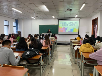 2021年10月31日,太阳成集团tyc7111“驶离孤岛——大学生人际交往”团体心理辅导小组于逸夫楼5503教室开展了第一期活动。本次团体辅导由洪盈老师担任主持人,团辅对象为外国语学院21级英语专升本2班全体同学。
