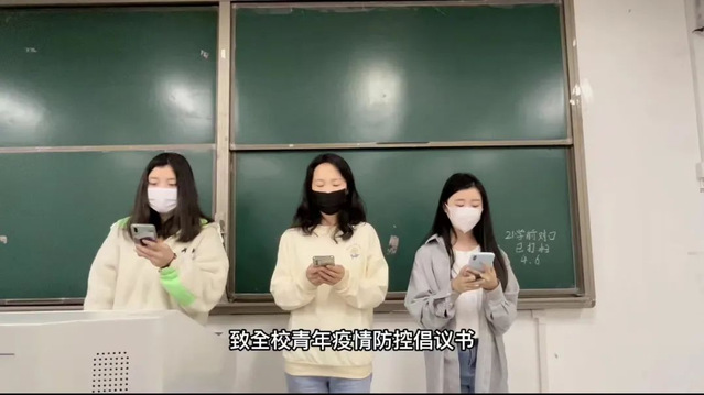 各团支部积极组织疫情防控倡议书线上接龙活动,依托班级宿舍为单位发起录制宣读防控倡议书视频,群策群力,上下联动,将防疫精神宣讲出去,传递出去,共同铸造牢固的校园防疫屏障。