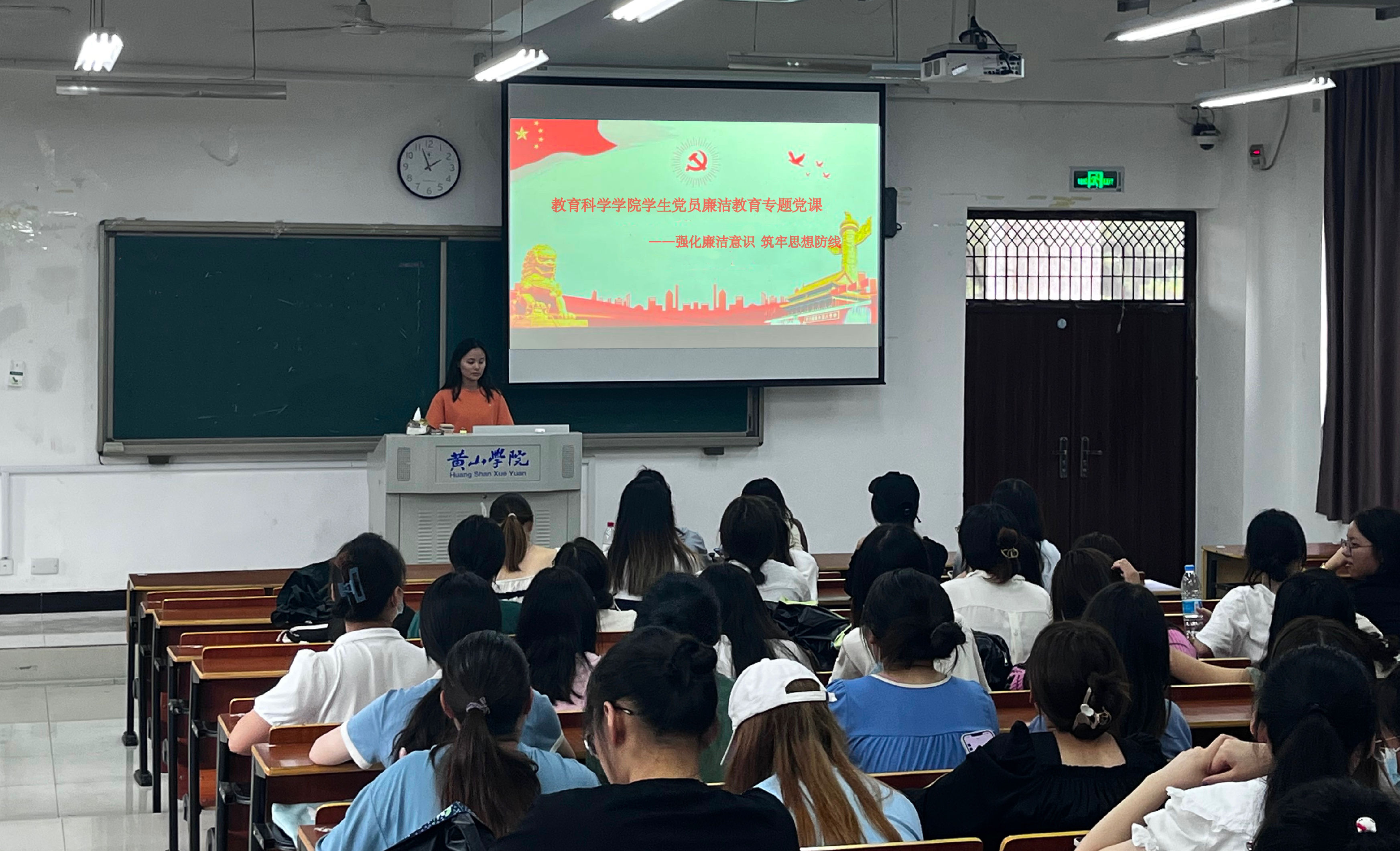 本次党课主要分为三个部分,分别是“国家反腐败斗争的形势分析”、“廉洁警示教育片学习”、“青年党员如何扣好人生中的第一颗扣子”。黄老师通过播放视频、例举数字等形式展示了反腐斗争的成果——小至基层党员,大到中央干部,从严执纪执法、打虎捕蝇、猎狐砸伞,触目惊心。通过一个个鲜活的案例为同志们讲述了腐败的危害,以案为鉴,同学们深切地认识到:墨滴入水,一滴就足以改变本色。黄老师强调大学生党员应坚定理想信念,树立正确的三观,以党章党规、先进模范、群众评价为镜,多给自己“全面体检”的建议,同时进一步强调青年的使命和青年对于民族复兴的意义。
