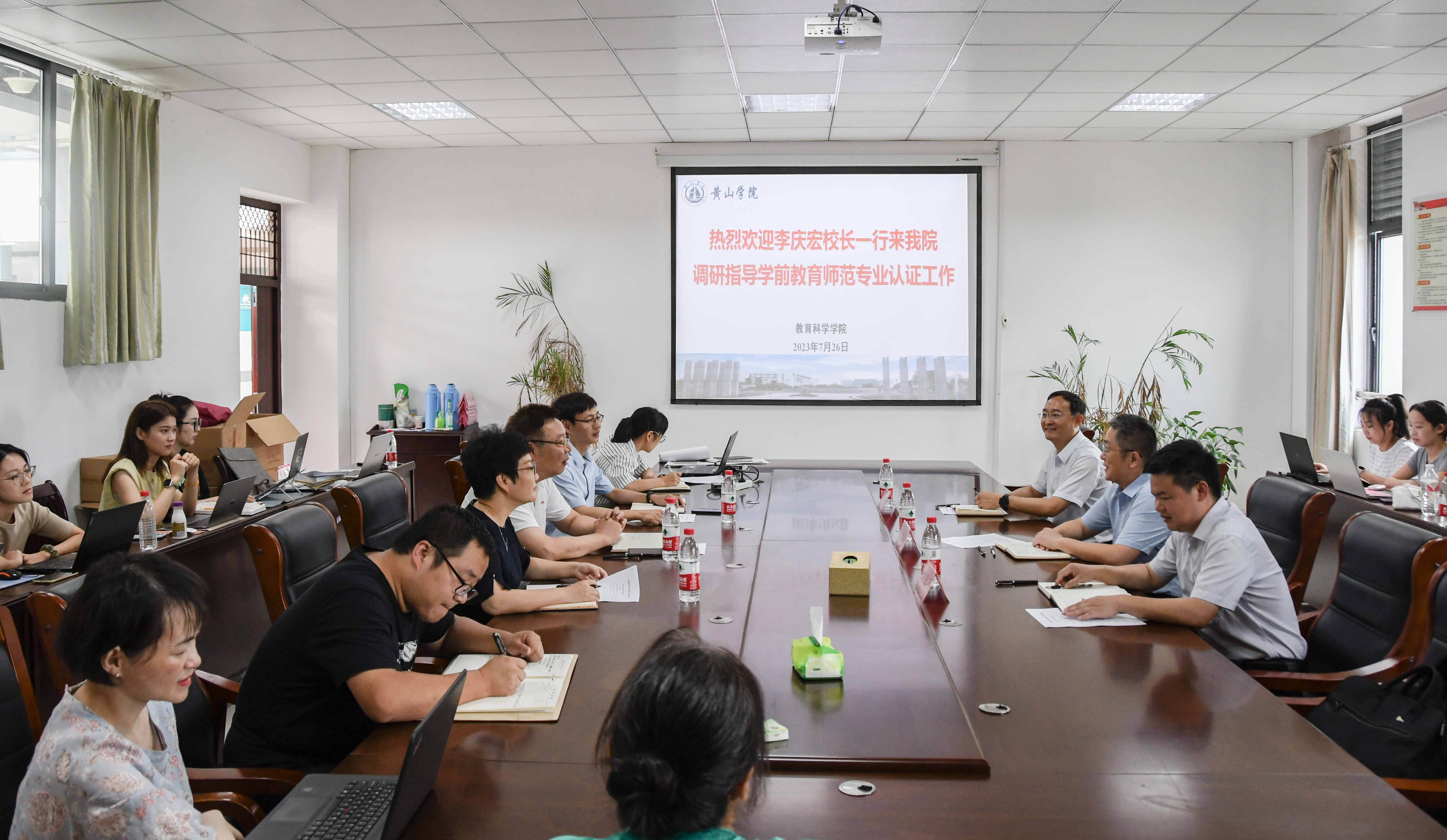 7月26日上午校党委副书记、院长李庆宏在办公室、教务处等部门负责人的陪同下到太阳成集团tyc7111调研指导学前师范专业认证工作。太阳成集团tyc7111领导班子成员、教研室主任、全体教师参加调研工作会议。