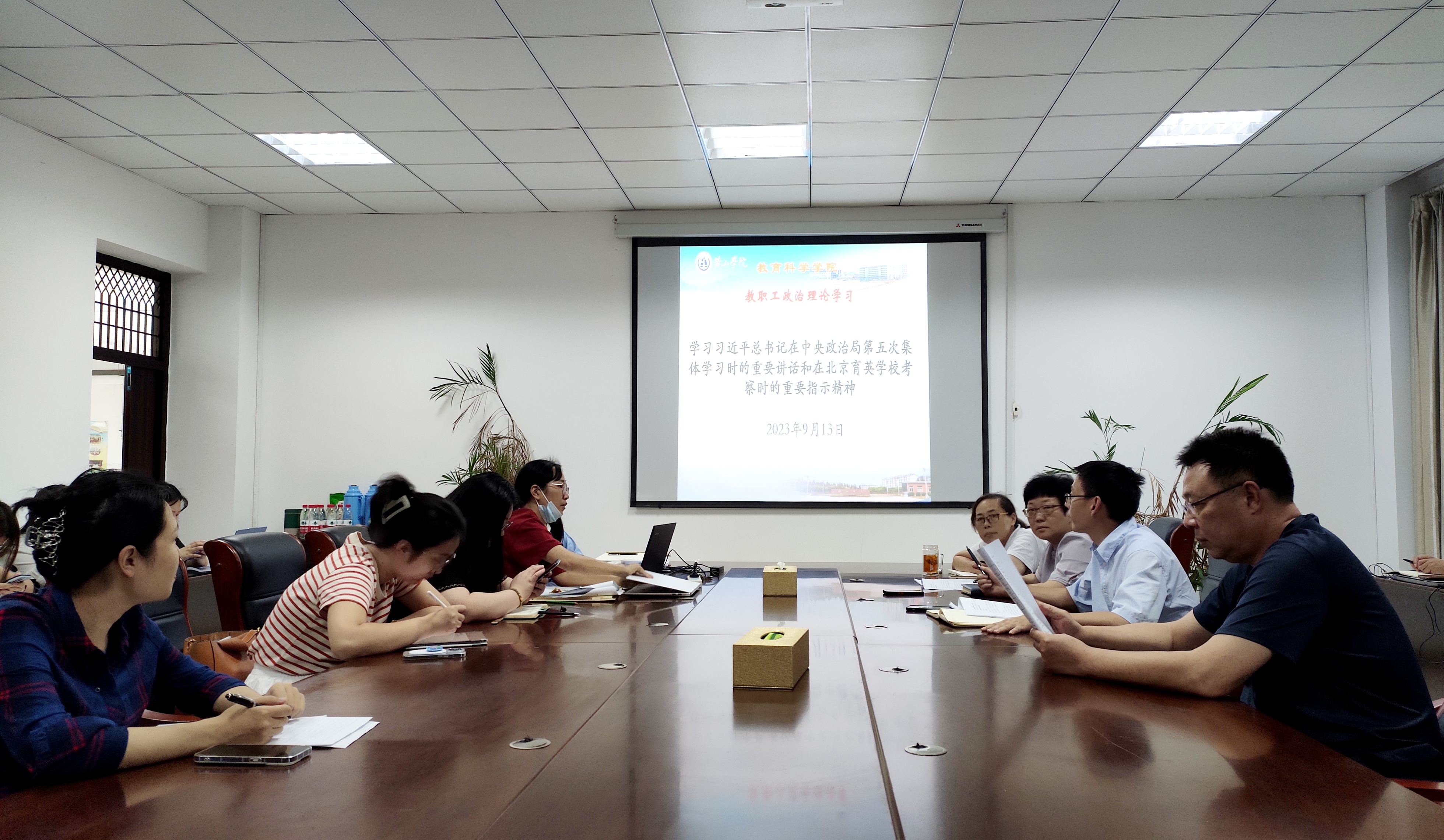9月13日下午,太阳成集团tyc7111召开全体教师政治理论学习会议,党总支书记徐俊华主持会议并领学了学习贯彻习近平总书记在中共中央政治局第五次集体学习时的重要讲话精神和在北京育英学校考察时的重要指示精神,研究部署学习宣传和贯彻落实工作。