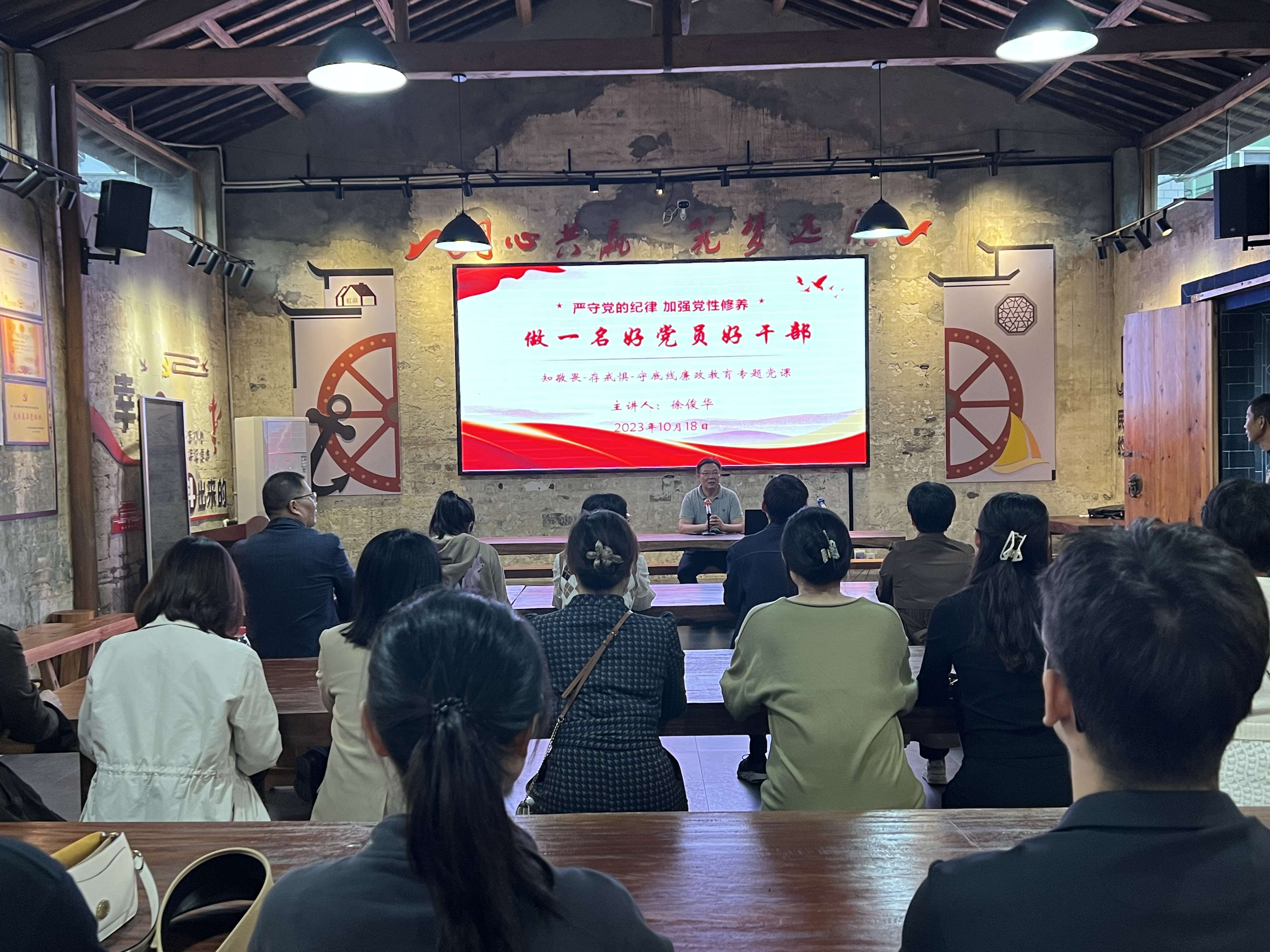专题党课,防微杜渐。在文化礼堂,党总支书记徐俊华以“严守党的纪律,加强党性修养,做一名好党员好干部”为题,从“认清重大意义,坚定不移严守党的纪律、加强党性修养,切实掌握党的纪律内容、坚持自省自励,筑牢违规违纪底线”三个方面,指出要认真汲取优秀传统文化的清廉养分,强调要继承和发扬我党优良传统和作风,不断增强抓好风气建设的自觉性,使廉洁风气建设始终走在社会前列,自觉用党的纪律约束言行,切实对党的事业负责,对自己的政治前途负责。