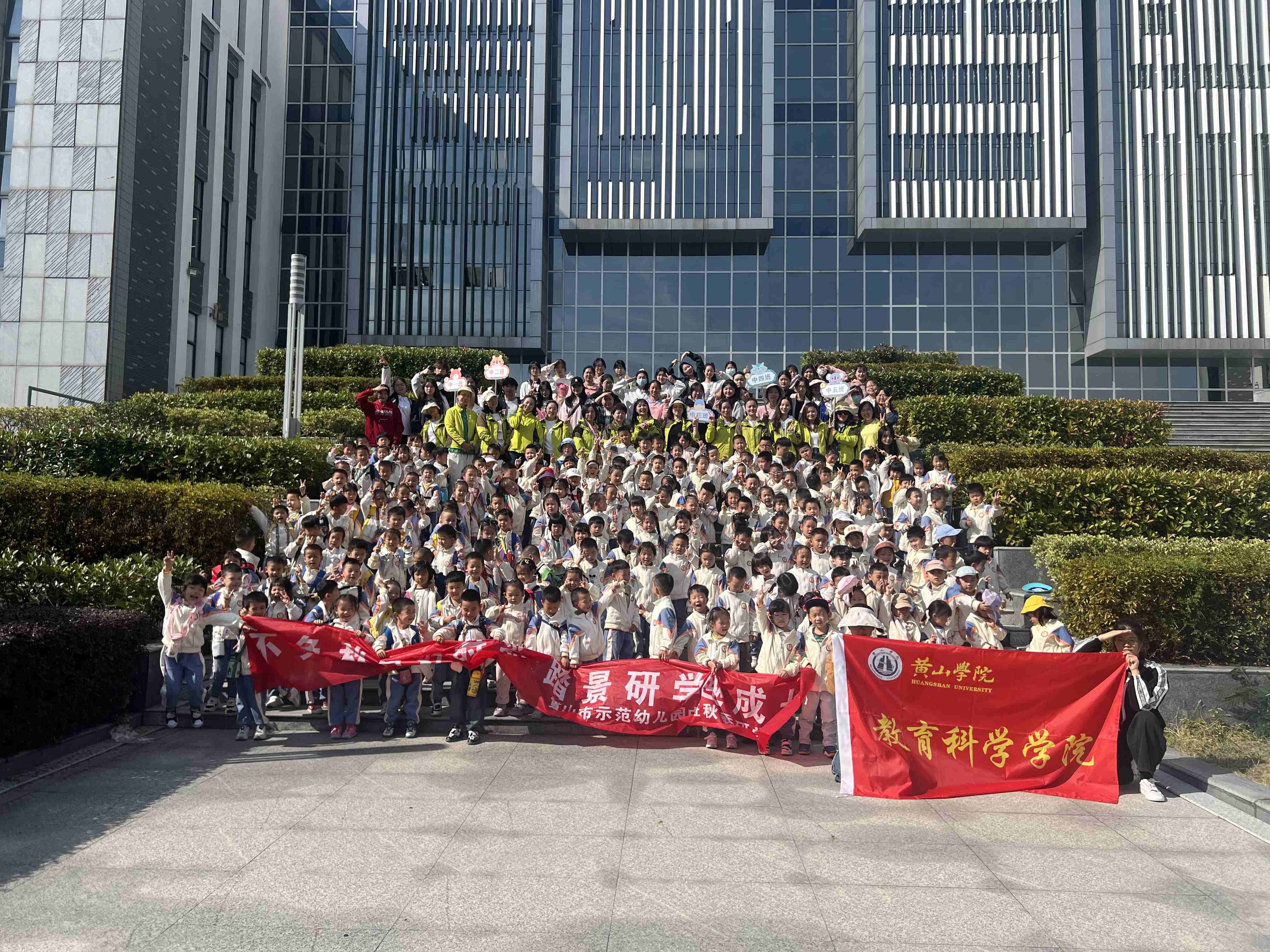 2023年11月3日上午,tyc7111cc太阳成集团南区迎来了一群特殊的客人——黄山市示范幼儿园中班年级组的师生们。孩子们身穿统一的园服,手拿书包,期待着这一次难得的大学校园之旅。