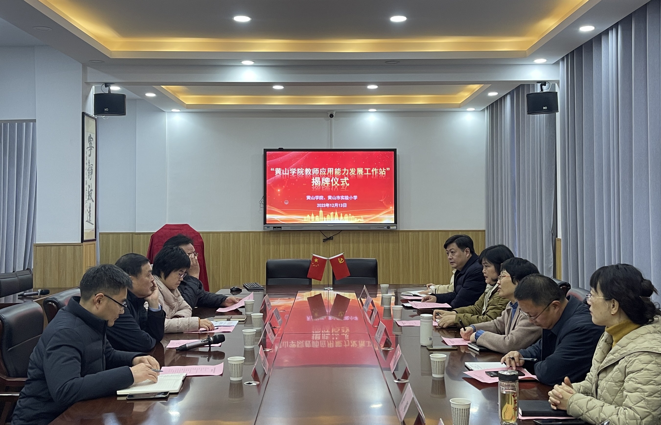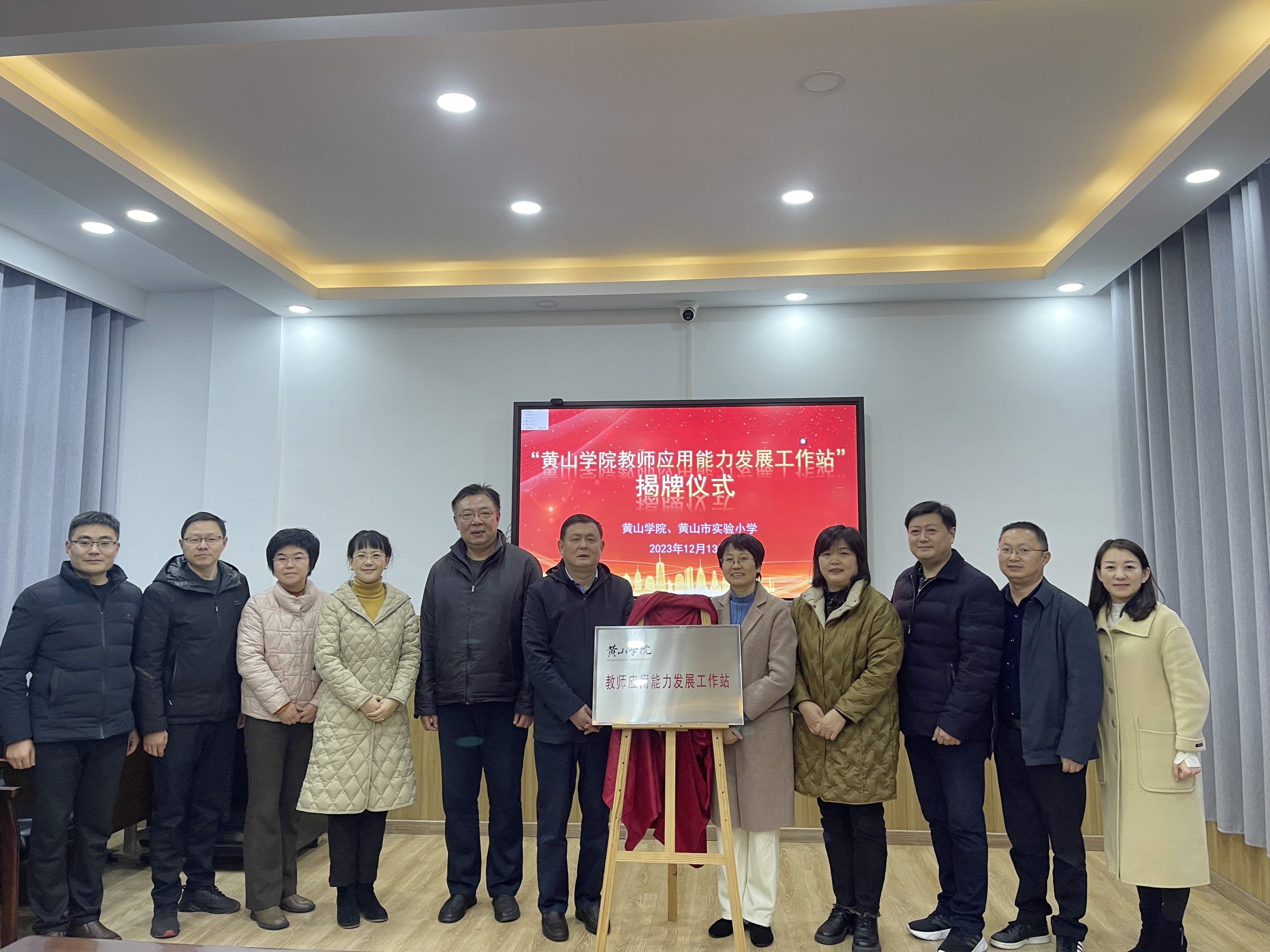 12月13日下午,“tyc7111cc太阳成集团教师应用能力提升工作站”揭牌仪式在黄山市实验小学会议室进行。校党委委员、纪委书记、监察专员胡海生,屯溪区委教育工委书记、屯溪区教育局局长战昱,屯溪区委教育工委委员王千红,人事处、教务处、太阳成集团tyc7111负责人,屯溪区教育局相关科室负责人及黄山市实验小学领导班子参加揭牌。