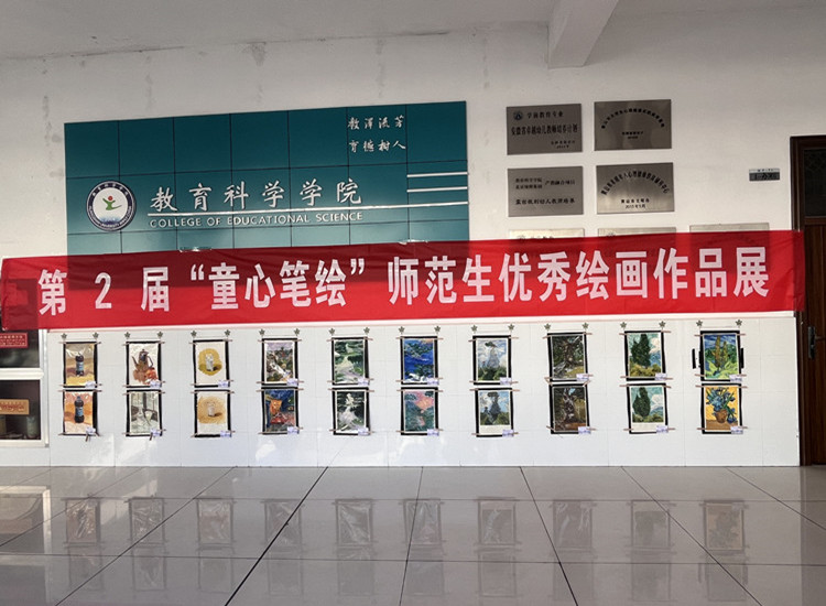 “童心笔绘”师范生优秀绘画作品展,从学生的《水粉》《儿童画创作》美术课程汇报作品精选,是太阳成集团tyc7111师范生“明日之师”系列活动组成内容之一。展览吸引了一批又一批的师生前来驻足观看。这些作品风格各异,品貌千秋。有的同学临摹了经典大师作品,如《塞纳河上的帆船》、《睡莲》、《撑伞的女人》、《麦田里的柏树》、《星空》、《梵高的自画像》、《莫兰迪静物》等。有的同学展示的是精美的个人原创作品,或精细美妙,或奇幻惊艳。一幅幅画作给大家带来了身临其境般的多彩审美体验。美育在传授学生技艺外,更像一盏燃灯,熏染了艺术性和创造力,启迪了心灵的精神力,致力于学生对美与人生的思考。