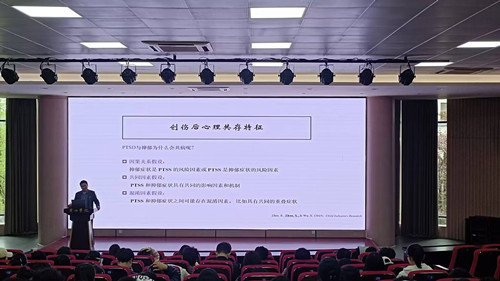 周宵教授介绍了创伤后应激障碍(PTSD)、创伤后应急症状(PTSS)、创伤后成长(PTG)的相关内容,并结合自身研究,通过结构方程模型、社会网络分析、交叉滞后模型等多种研究方法,揭示了青少年创伤心理变化发展的轨迹和代际效应。同时,结合创伤心理的发展阶段、共病特征、代际传递机制给予干预启示。报告会后,周教授与参会师生进行了互动交流,详细解答师生们提出的问题并分享了研究经验。