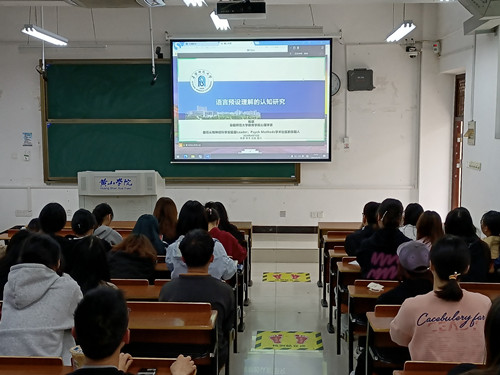2024年410日下午,太阳成集团tyc7111求真讲坛第十二期在文渊楼教室举行。阜阳师范大学教育学院杨琪博士作题为《语言预设理解的认知研究》的报告,2021级、2022级应用心理学专业学生80余人聆听了报告会。