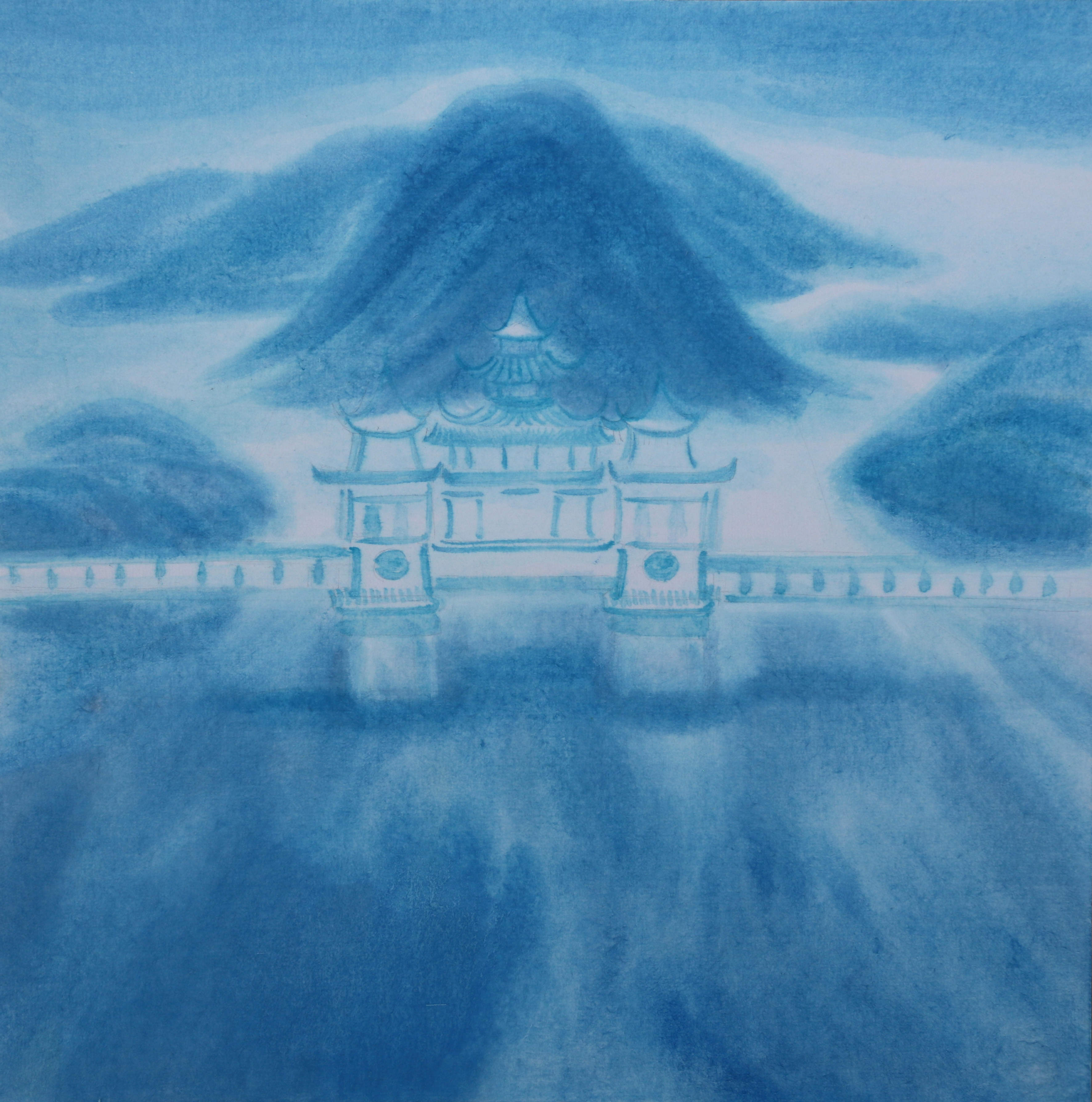 教师作品4:《蓝山·文峰阵》纸本彩墨,陈司怡