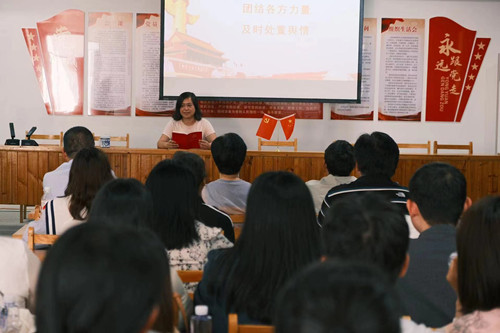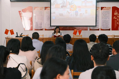在环居村村委会大礼堂,学前教育教工党支部书记王永杰以《学条例知敬畏守党纪》为主题,为党员干部讲授专题党课,她强调:“坚持以严的标准要求干部、以严的措施管理干部、以严的纪律约束干部,使干部心有所畏、言有所戒、行有所止”。应用心理学和小学教育教工联合党支部书记范建丽以《法纪无小事 行稳方致远》为主题,结合近年来高校违规违纪典型案例,为党员干部敲响警钟,她强调“高校担负着立德树人的神圣使命,广大党员干部必须警醒起来、行动起来、严格起来,同频共振、同向发力,全面做好从严治党各项工作”。