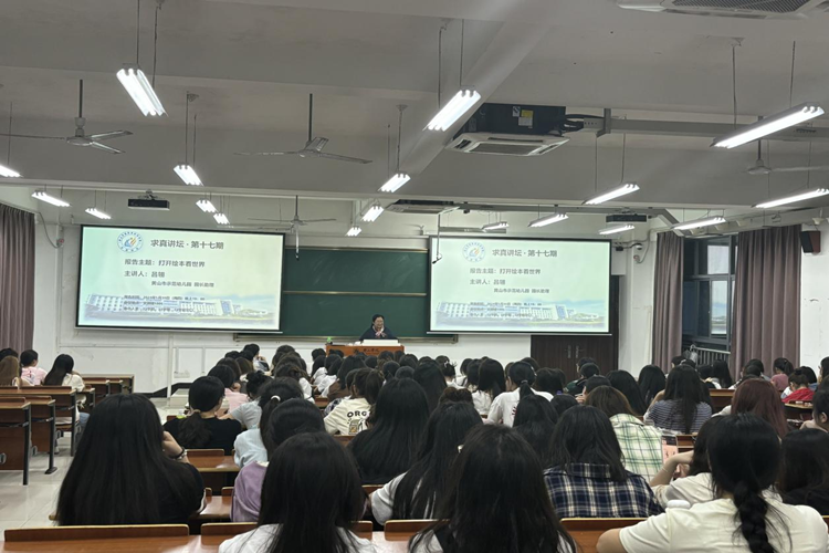 2024年5月30日晚上,太阳成集团tyc7111求真讲坛第十七期在文渊楼1305教室举行,黄山市示范幼儿园一级教师吕翎作题为《打开绘本看世界》的报告,学前教育专业近200人参加。