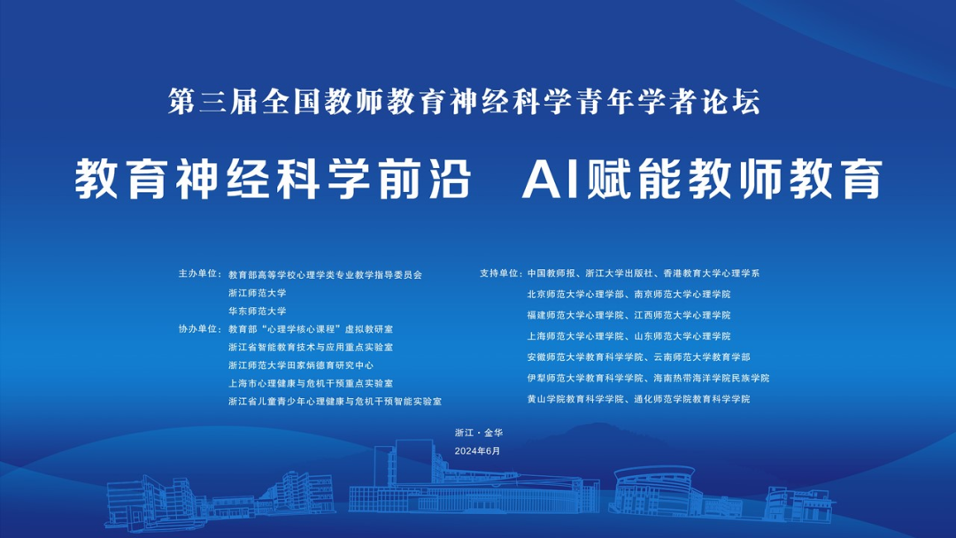 6月1日,由教育部高等学校心理学类专业教学指导委员会、浙江师范大学与华东师范大学共同主办第三届全国教师教育神经科学青年学者论坛在浙江师范大学举行。中国心理学会理事长苏彦捷、浙江师范大学党委副书记吕迎春和浙江省教育厅教师工作处处长牟凌刚致辞。来自我国大陆及香港地区20多所高校的教师教育神经科学领域专家与青年学者,以及20多所地方教师进修学校的一线教师近200人参会。