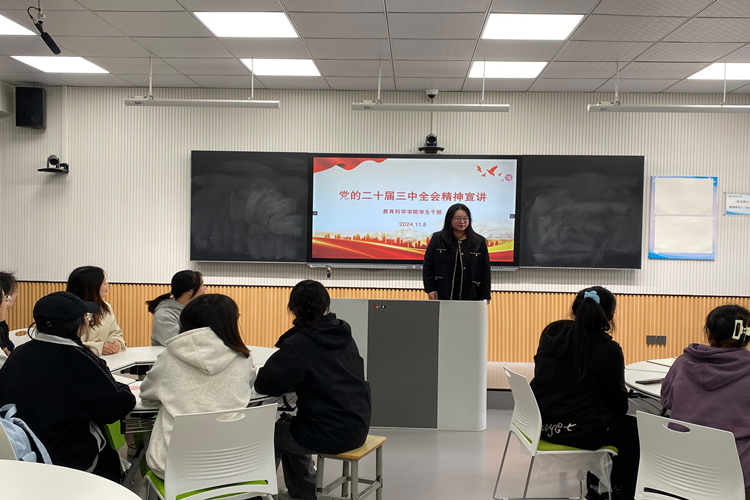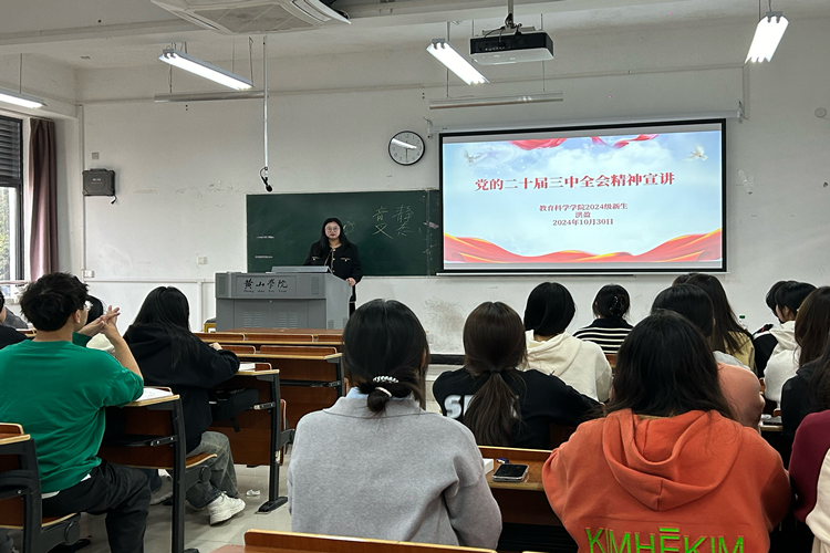 宣讲会上,洪盈深入解读了党的二十届三中全会的重要决策和战略部署,强调了全会对于推动全面建设社会主义现代化国家新征程的重大指导意义号召青年学子要在学习中增长智慧,提升本领,大力弘扬教育家精神,努力成长为有理想信念、有道德节操、有扎实学识、有仁爱之心的新时代“四有”好老师。