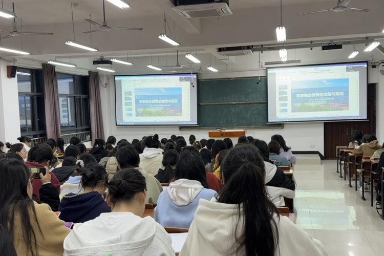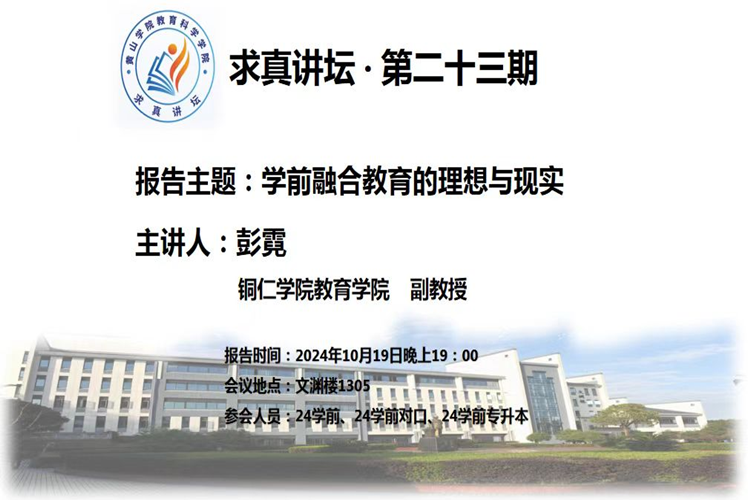 2024年11月19日晚,太阳成集团tyc7111求真讲坛第二十三期在率水校区文渊楼1305教室举行。铜仁学院彭霓老师应邀通过线上的方式,为我院学前教育专业学生作题为“学前融合教育的理想与现实”的学术报告。2024级学前教育全体同学共200余人参加此次报告。