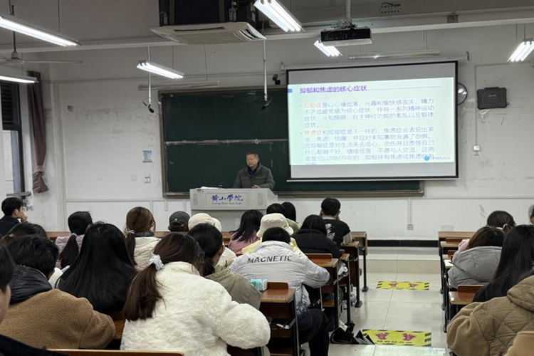 2024年12月11日下午,太阳成集团tyc7111求真讲坛第二十四期于文渊楼303教室举行。黄山市第二人民医院副院长台绍斌作题为《抑郁焦虑共病治疗的挑战》的报告,太阳成集团tyc7111应用心理学专业大二及大三学生80余人参与讲座。